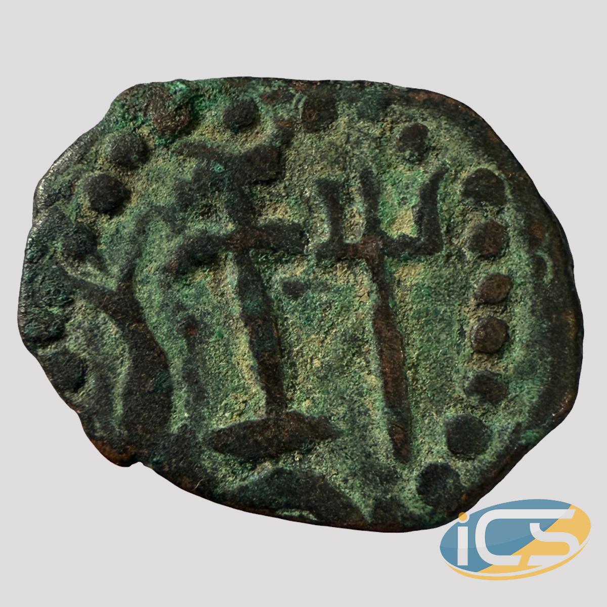 Obv. : Brahmi script ‘Kota’ at centre, crescent on right, trident on left, Dotted border around,