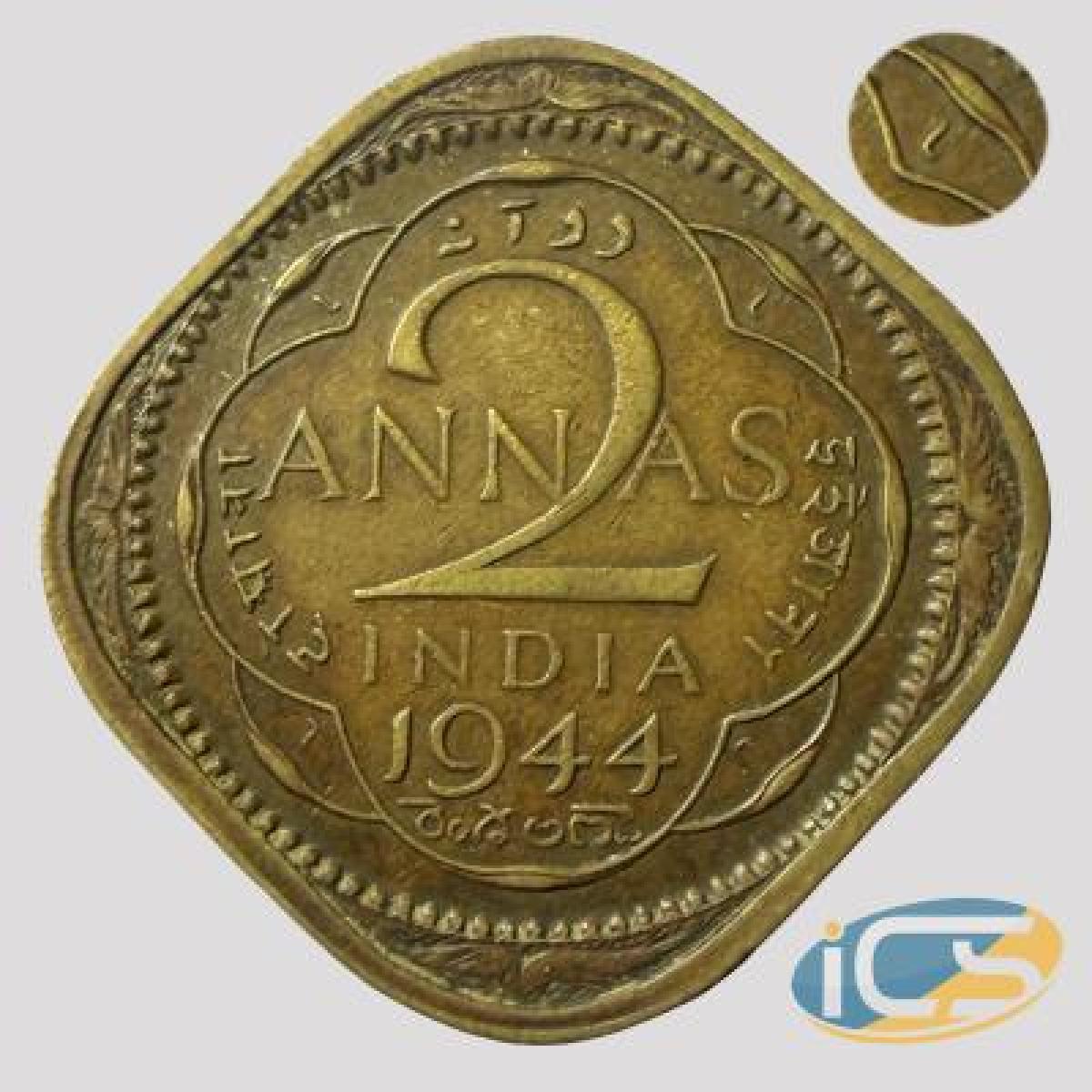 1944, King George VI, Nickel-Brass 2 Annas, Lahore Mint, no dots by year, L raised 4 times in the quatrefoil angles, Large numerals 44, 5.91g, 22.40mm (PR # 908/GK # 1366)