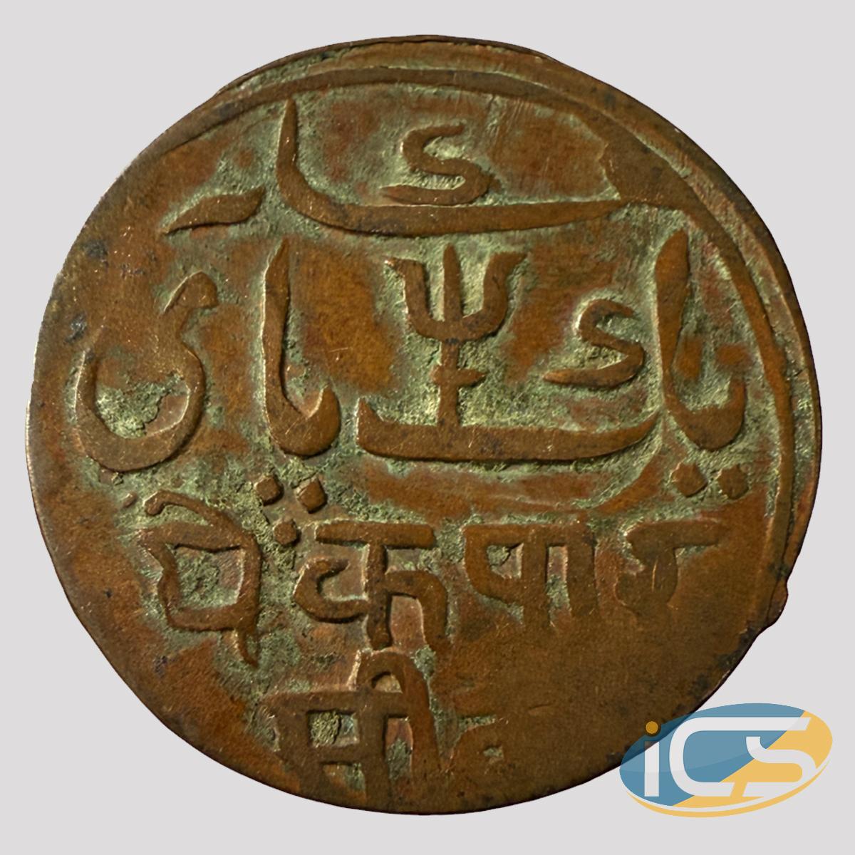 Bengal Presidency, Copper 1 Pice (Ek Pai Sikka), Murshidabad Mint (1827), RY 37, with a crossbar on Trisul, 6.26g, 24.11mm, KM#30