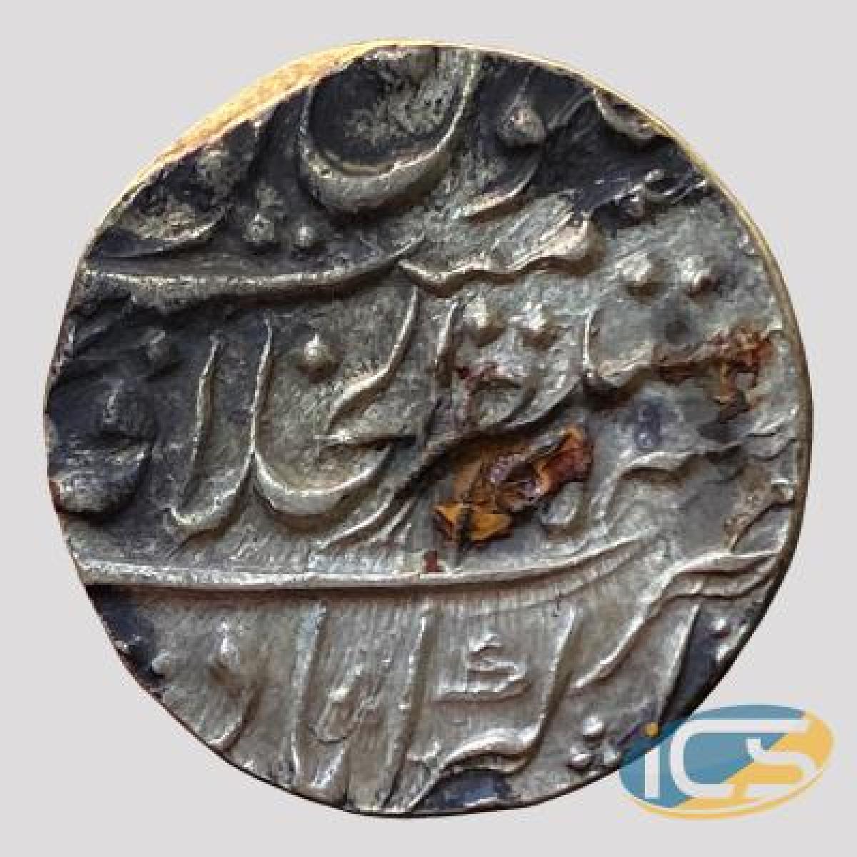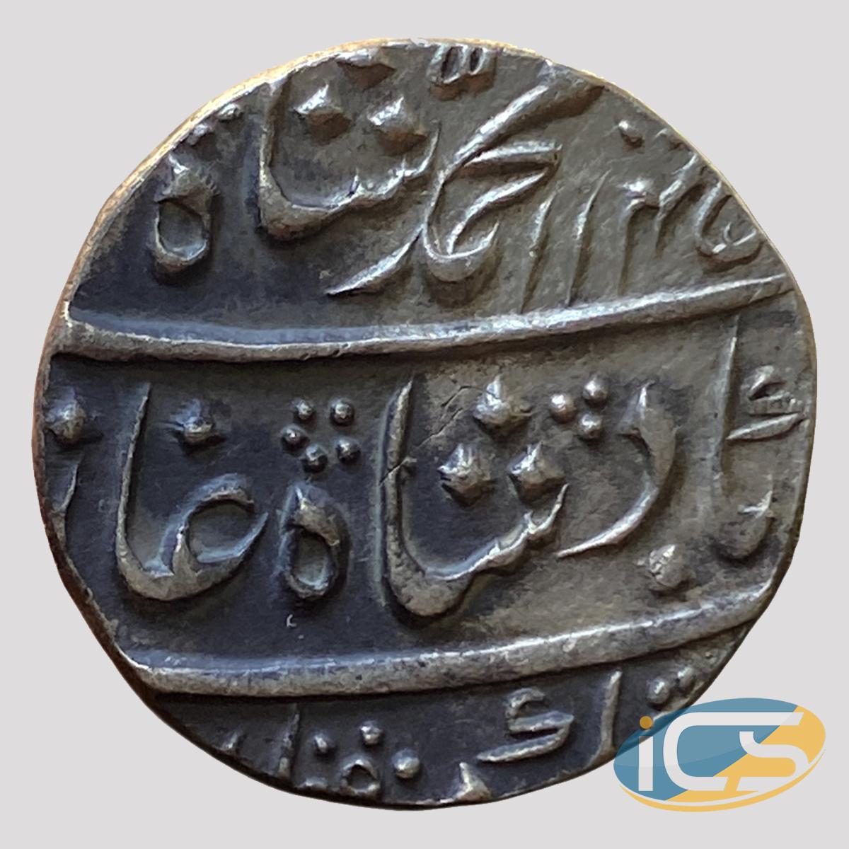 Rev. 'zarb-e mostaqar al-khelāfa Akbarābād sane-ye 20 jolus-e meymanat maʾnus' ('Struck in the seat of caliphate, Akbarābād, in the year 20 of the prosperous reign' in Persian).