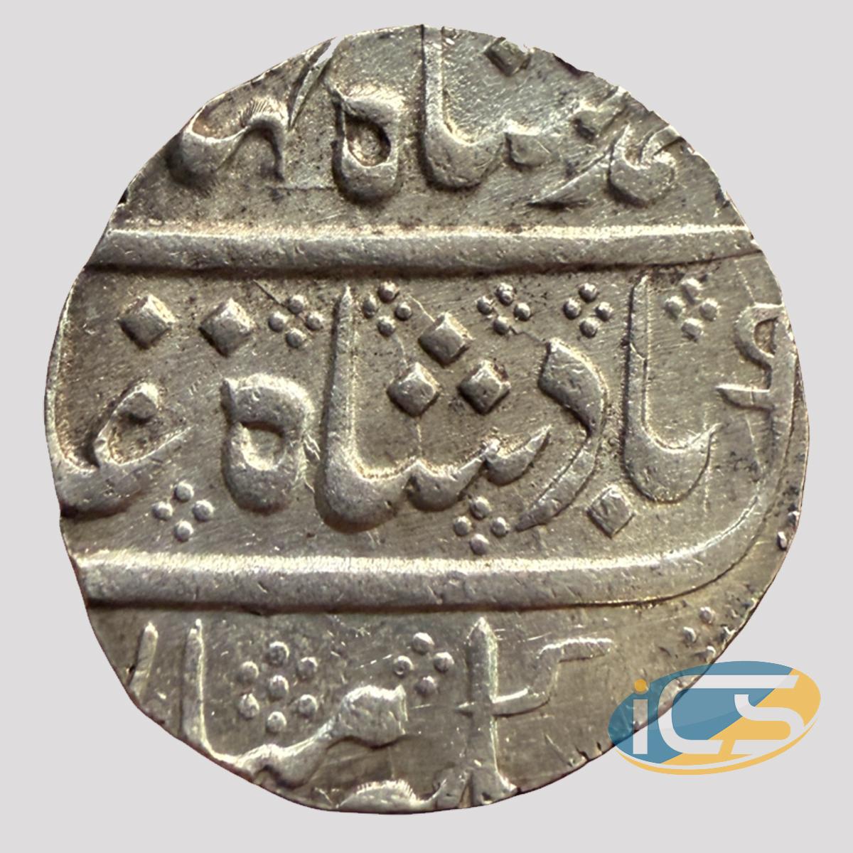 Indo French, INO Ahmad Shah Bahadur (AH 1161-1167, 1748-1754 AD), Silver Rupee, Arkat Mint (visible at bottom on rev), RY 2, crescent mark on rev, 11.36 gms, 24.30 mm, KM # 8