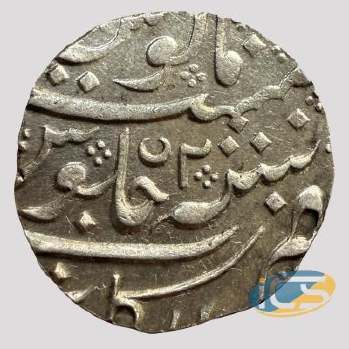 Indo French, INO Ahmad Shah Bahadur (AH 1161-1167, 1748-1754 AD), Silver Rupee, Arkat Mint (visible at bottom on rev), RY 2, crescent mark on rev, 11.36 gms, 24.30 mm, KM # 8