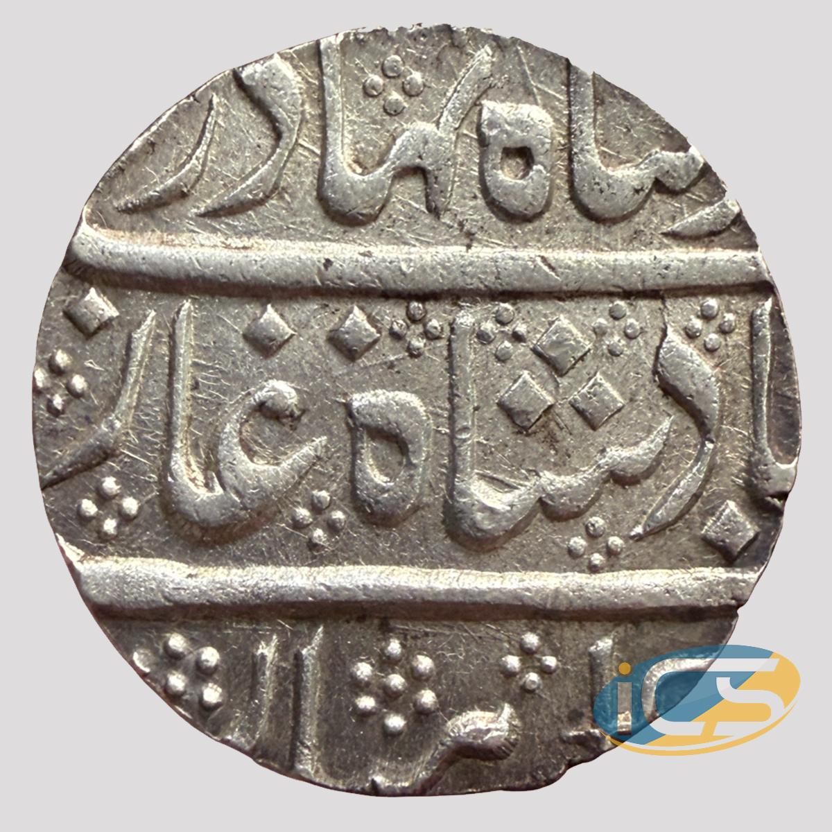 Indo French, INO Ahmad Shah Bahadur (AH 1161-1167, 1748-1754 AD), Silver Rupee, Arkat Mint (visible at bottom on rev), RY 3, crescent mark on rev, 11.28 gms, 24.30 mm, KM # 8
