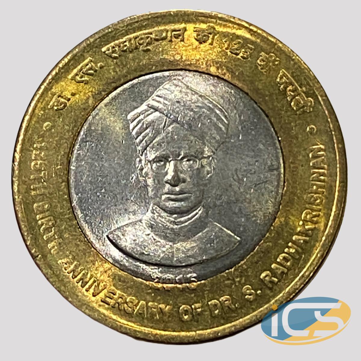Circulating commemorative coin - 10 Rupees "125th Birth Anniversary of Dr. Sarvapalli Radhakrishnan", 2015, Calcutta Mint, Bimetallic, 7.71 g, 27 mm, Rare