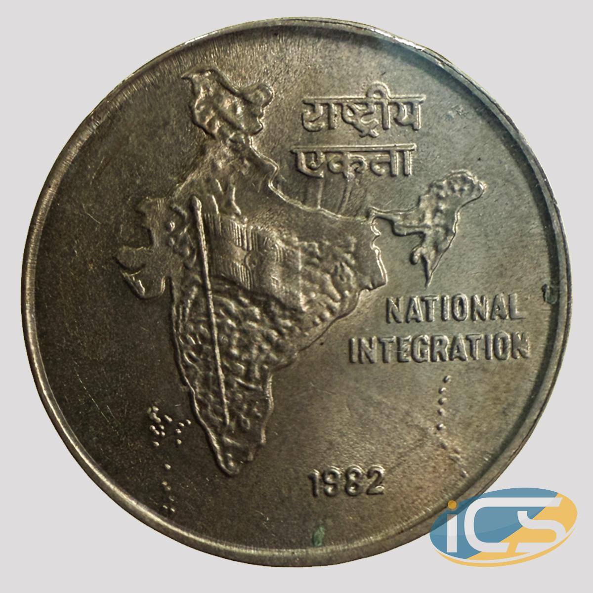 50 Paise, Commemorative coin, National Integration, 1982, Calcutta Mint, (without Mint Mark), 5g, 24mm, Rare