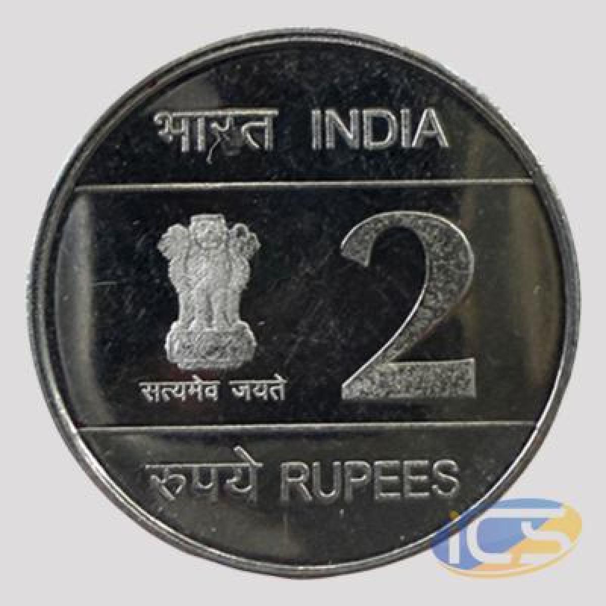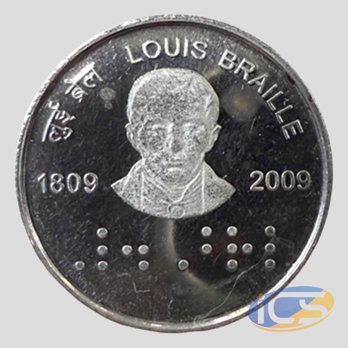 Commemorative issue,Louis Braille, 2 Rupees, 2009, Kolkata Mint, Stainless steel, Proof Coin, 5.8, 27mm