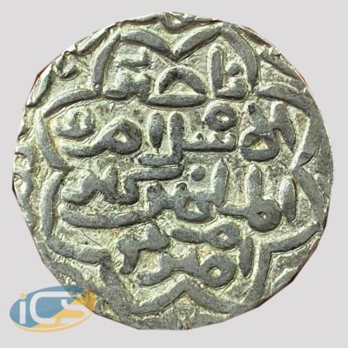 Obv: Arabic legend “al-mu'ayyad bi-ta'yid al-rahman ghiyath al-dunya wa'l din abu'l muzaffar a'zamshah al-sultan”, Four calips in margin.