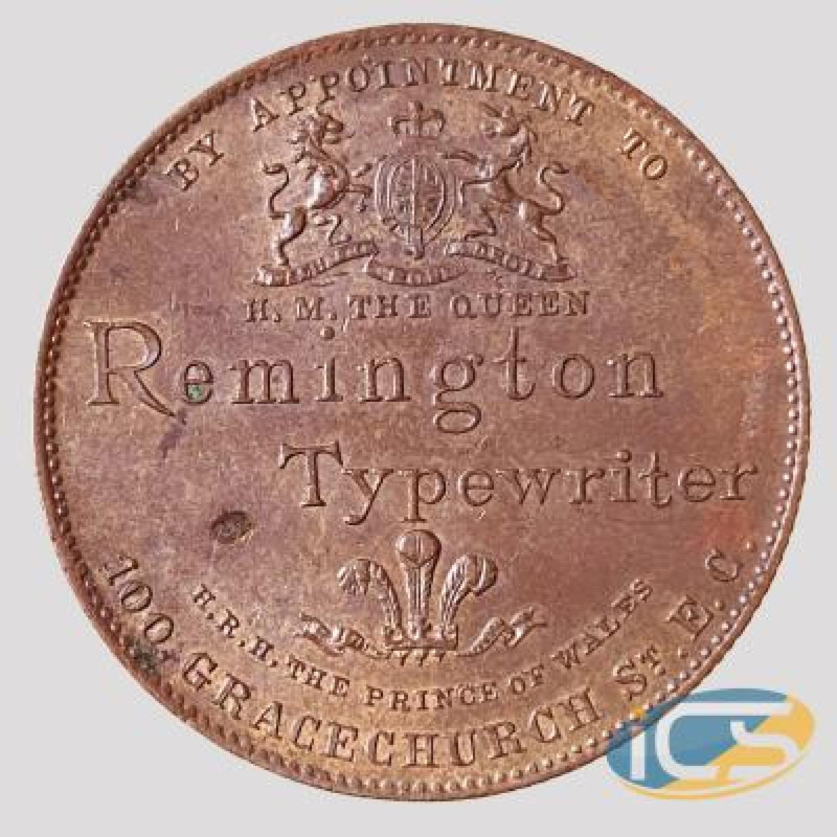 Advertising medallions/ Token, United Kingdom, Remington Typewriter, Queen Victoria (1837-1901), 1896, Bronze, 11.20g, 32mm.