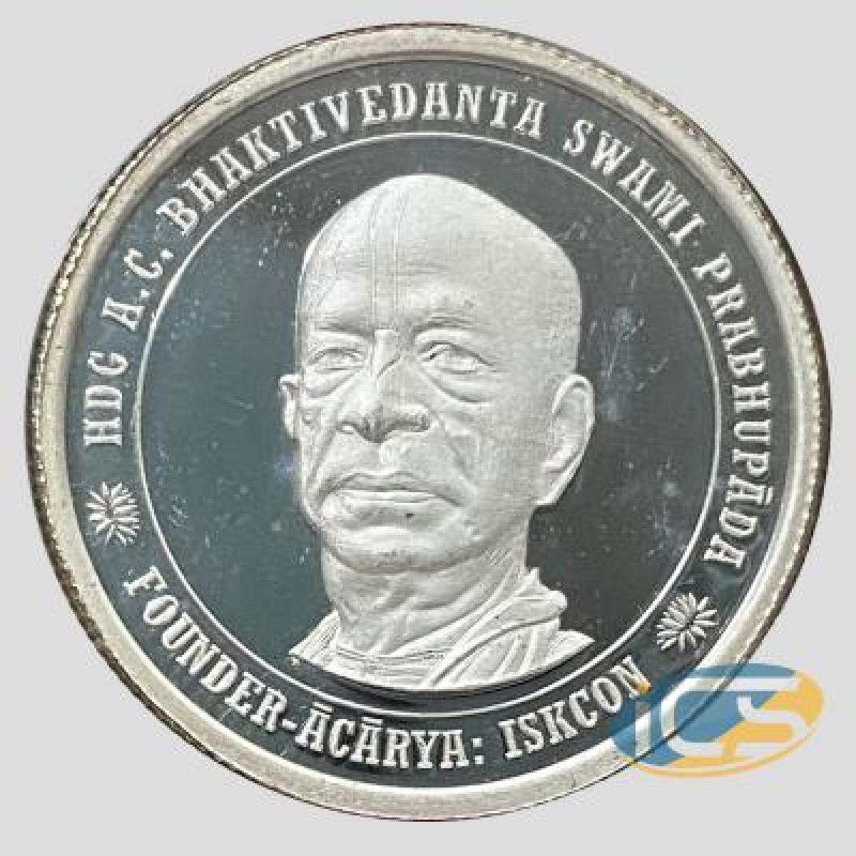 Commemorative silver Medallion (coin) of the 125th birth anniversary of ISKCON founder-acharya Srila Prabhupada :